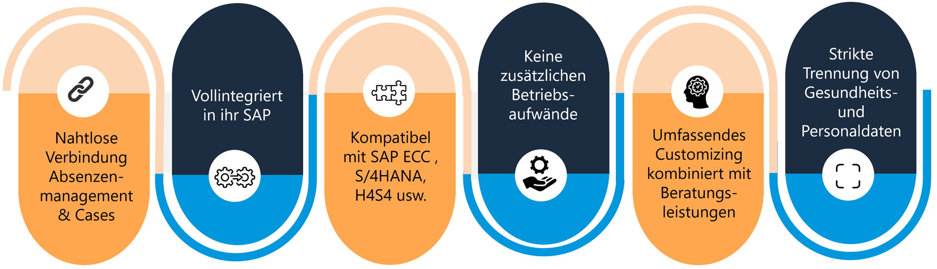 Um einen strukturierten Prozess zu gewährleisten, wird ein geeignetes Tool benötigt. Firmen, die im HR mit SAP arbeiten, stehen dabei vor Herausforderungen. Der SAP-Standard bietet keine Möglichkeit für ein prozessorientiertes Absenzenmanagement. Oft wird auf separate Systeme mit Schnittstellen ins SAP zurückgegriffen. Die Folgen sind ein erhöhter Betriebsaufwand, fehleranfällige Schnittstellen und eine redundante Datenerfassung.
